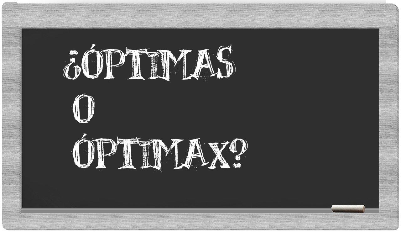 En la situación específica que involucra las palabras óptimas y óptimax, la elección es evidente, pues únicamente óptimas es la que se encuentra correctamente redactada. Por otro lado, óptimax no se halla registrada en el Diccionario de la Real Academia Española.