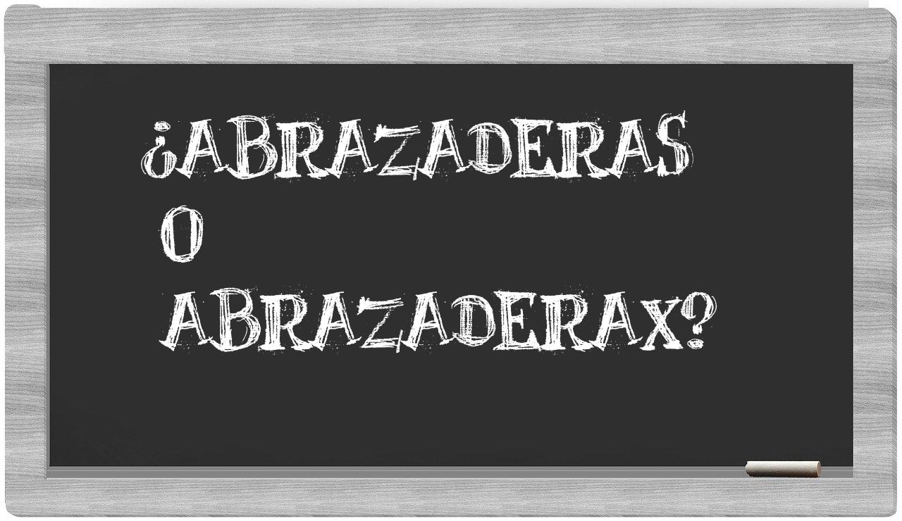 En la particular situación entre los términos abrazaderas y abrazaderax, es fundamental no titubear, puesto que únicamente abrazaderas se presenta de manera adecuada. Por su parte, abrazaderax no se encuentra recogido en el Diccionario de la Real Academia Española.