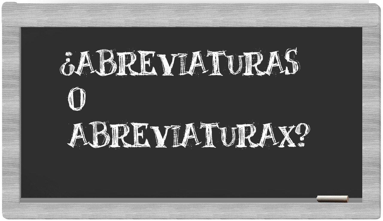 En la situación particular entre los términos abreviaturas y abreviaturax nunca deberías titubear, puesto que únicamente abreviaturas es el que se encuentra correctamente redactado. Por otro lado, abreviaturax no figura en el léxico de la Real Academia Española.