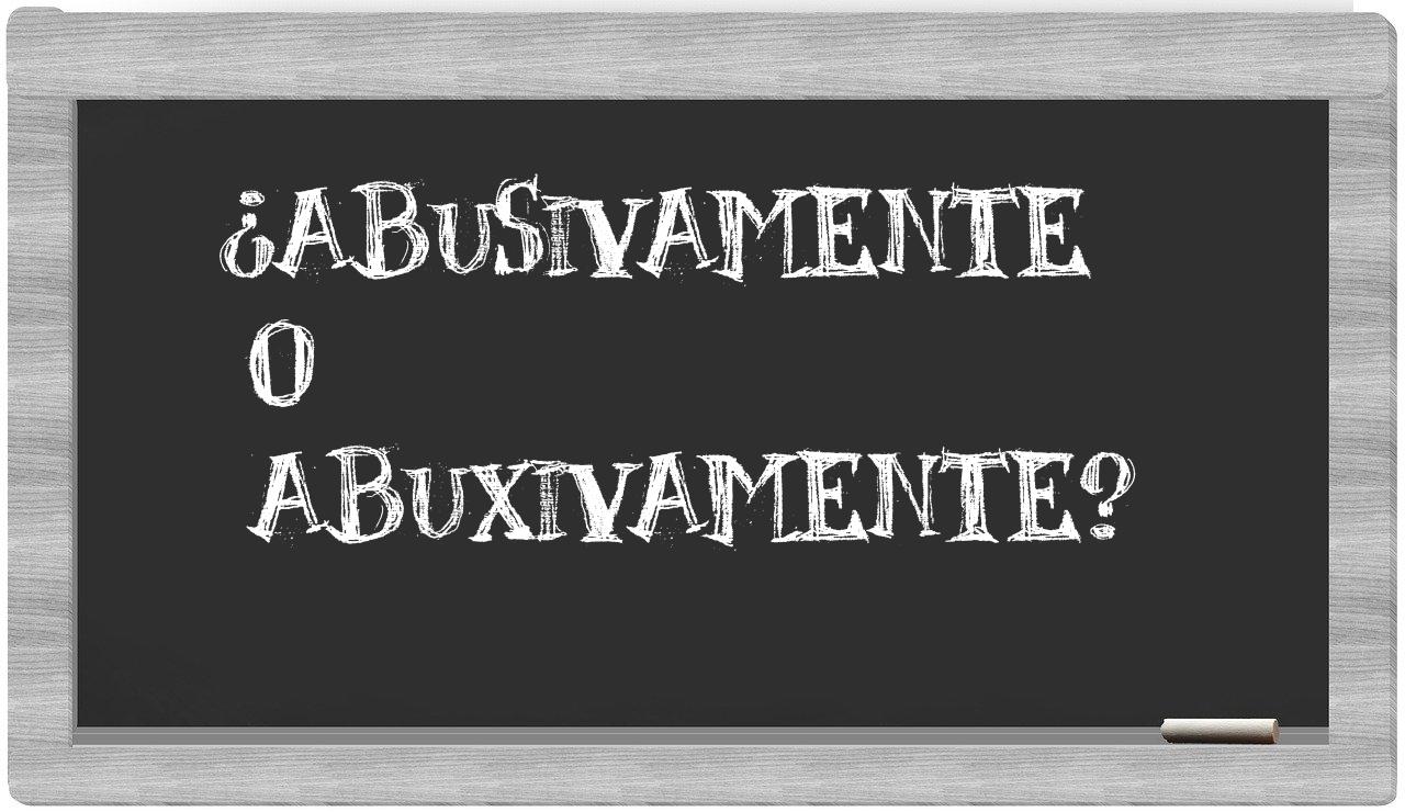 Cuando se trata de las palabras abusivamente y abuxivamente, no hay lugar para la incertidumbre, puesto que solo abusivamente se presenta como la opción correcta; de hecho, abuxivamente no figura en el prestigioso Diccionario de la Real Academia de la Lengua.