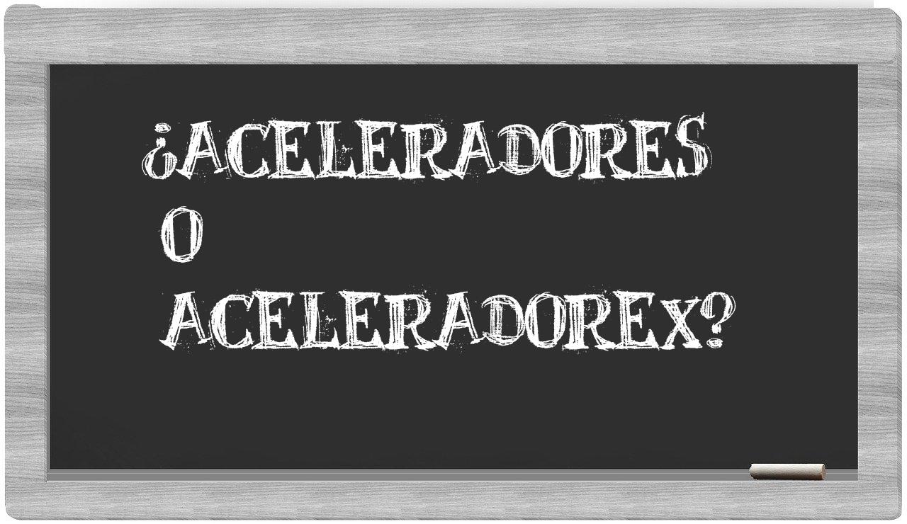 Cuando te encuentres en la disyuntiva entre aceleradores y aceleradorex, no vaciles en tu decisión, porque únicamente aceleradores es la forma adecuada. Recuerda que aceleradorex no está registrada en el Diccionario de la Real Academia Española.