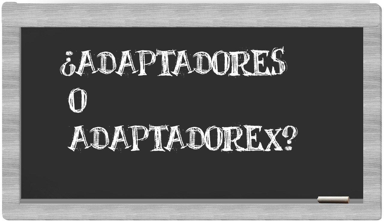 Al tener en cuenta la relación entre adaptadores y adaptadorex, es crucial que mantengas certeza, puesto que únicamente adaptadores está adecuadamente formulada. La palabra adaptadorex no tiene lugar en el Diccionario de la Real Academia Española.