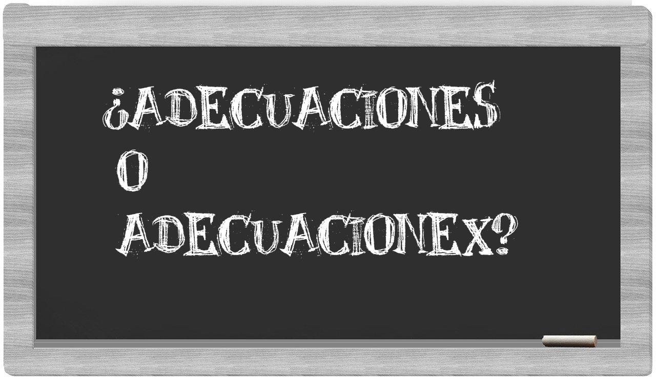 En la particular situación que existe entre los términos adecuaciones y adecuacionex, nunca debería haber incertidumbre, puesto que únicamente adecuaciones se encuentra correctamente formulada. La palabra adecuacionex no figura en el Diccionario de la Real Academia Española.