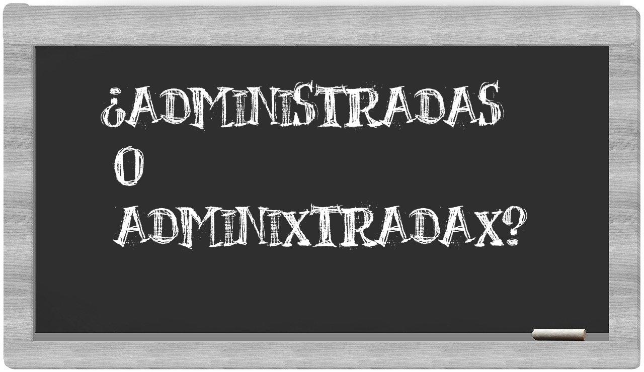 Cuando se presenta la disyuntiva entre administradas y adminixtradax, es fundamental que no vaciles, puesto que únicamente administradas está debidamente registrada como correcta. Por otro lado, adminixtradax no figura en el Diccionario de la Real Academia Española.