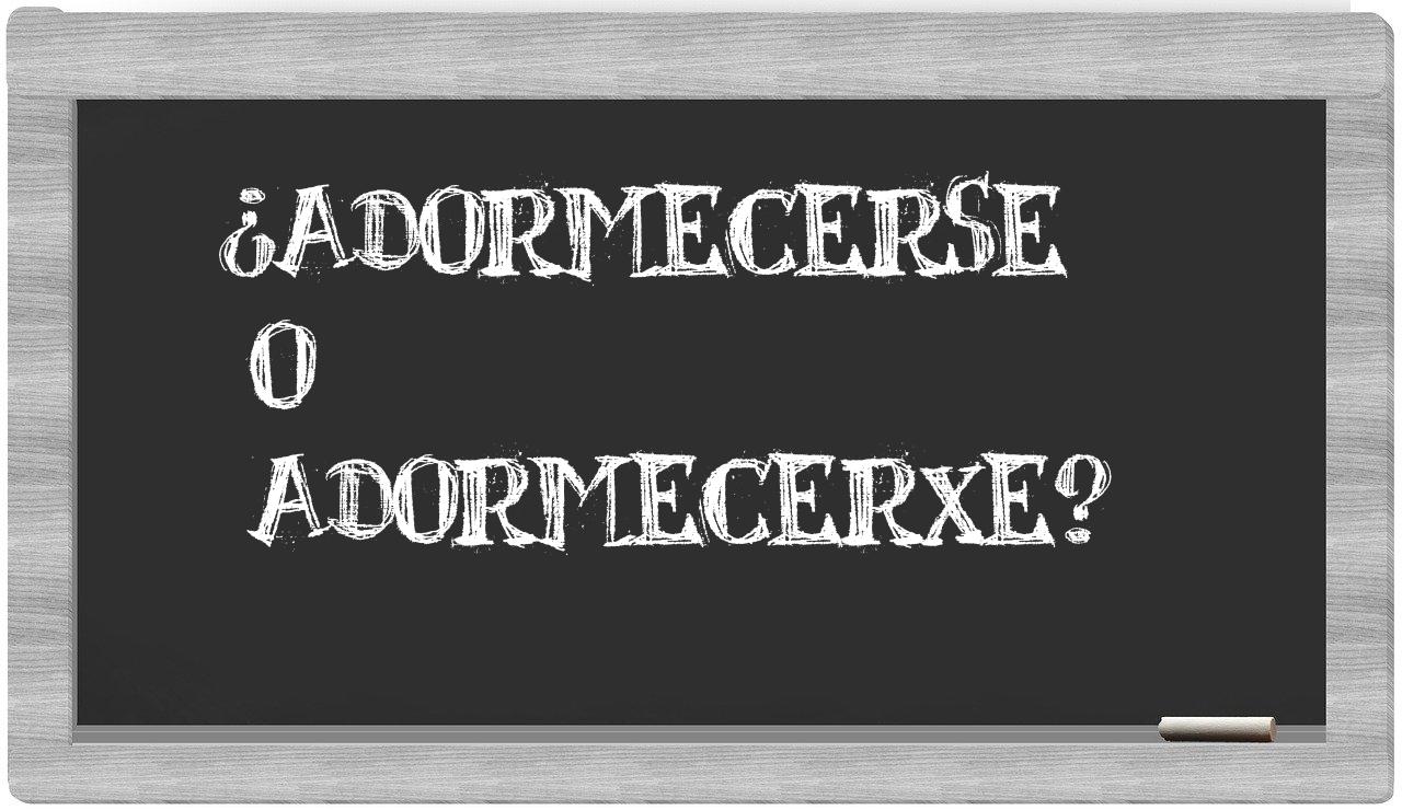 Cuando te enfrentes a la elección entre adormecerse y adormecerxe, es fundamental que no vaciles, puesto que únicamente adormecerse representa la forma adecuada. Recuerda que adormecerxe no está recogida en el Diccionario de la Real Academia Española.