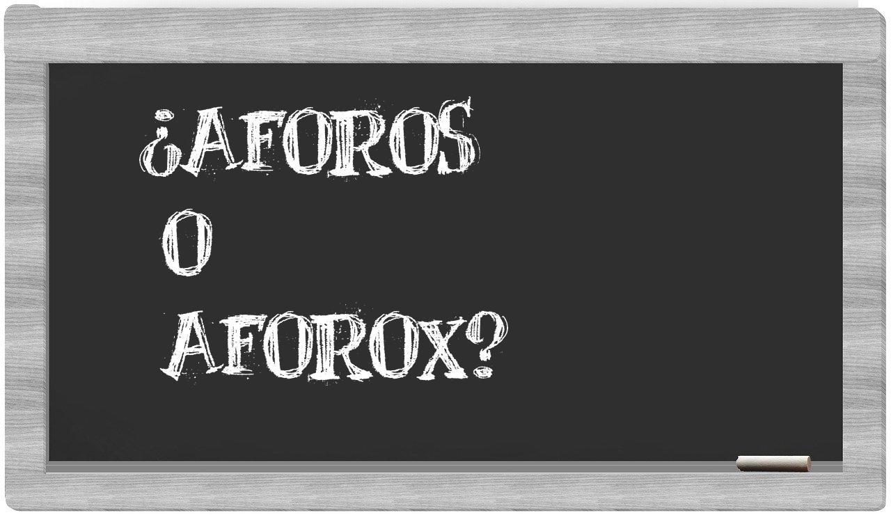 Cuando se trata de elegir entre las expresiones aforos y aforox, nunca deberías titubear, puesto que únicamente aforos es la que está adecuadamente redactada. Por otro lado, aforox no figura en el léxico oficial de la Real Academia Española.
