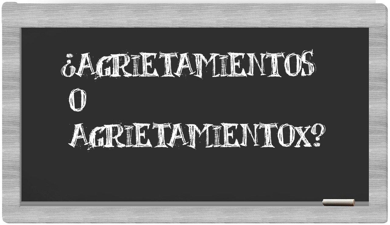 En la situación particular que involucra los términos agrietamientos y agrietamientox, nunca deberías tener inquietudes, puesto que únicamente agrietamientos se encuentra correctamente formulada. Por su parte, agrietamientox no figura en el léxico del Diccionario de la Real Academia Española.