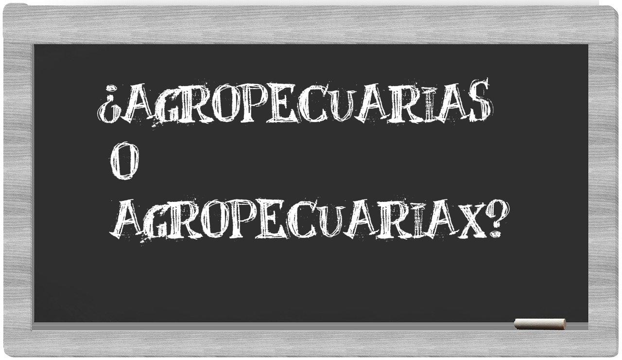 Cuando te enfrentes a la elección entre agropecuarias y agropecuariax, no vaciles ni un instante, porque únicamente agropecuarias es la forma adecuada, mientras que agropecuariax no se encuentra registrada en el Diccionario de la Real Academia Española.