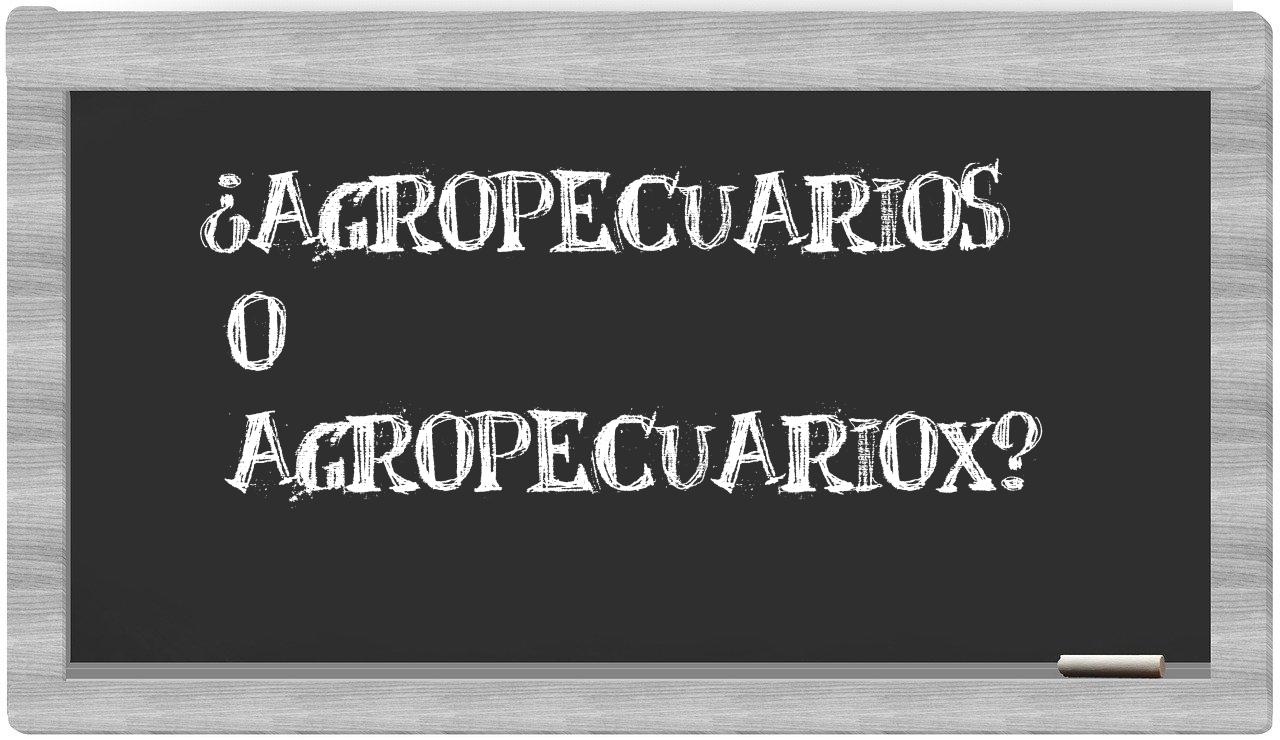 Cuando se trata del par de términos agropecuarios y agropecuariox, nunca deberías titubear, pues solo agropecuarios es la opción que se encuentra bien formulada; por otro lado, agropecuariox no figura en el Diccionario de la Real Academia Española.