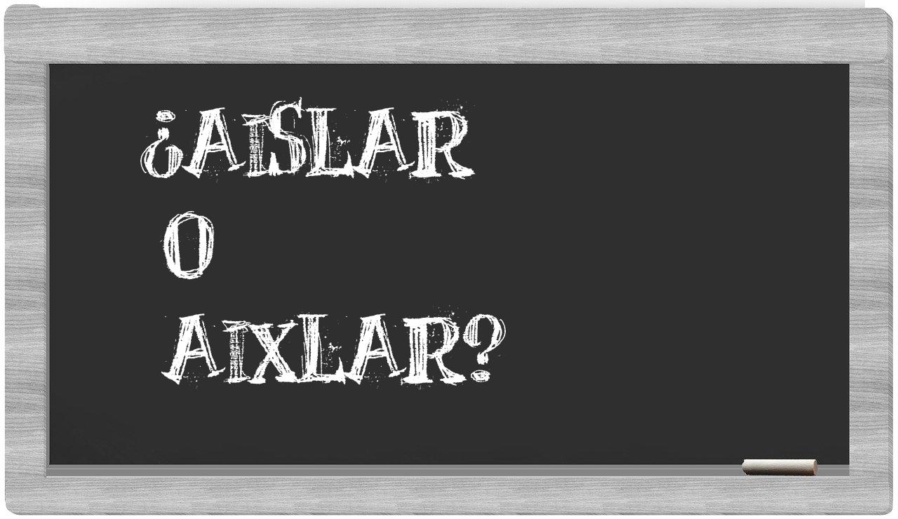 Cuando se trata de las palabras aislar y aixlar, la elección es clara y no debe generar indecisiones, puesto que únicamente aislar es la forma correcta, mientras que aixlar no figura en el Diccionario de la Real Academia Española.