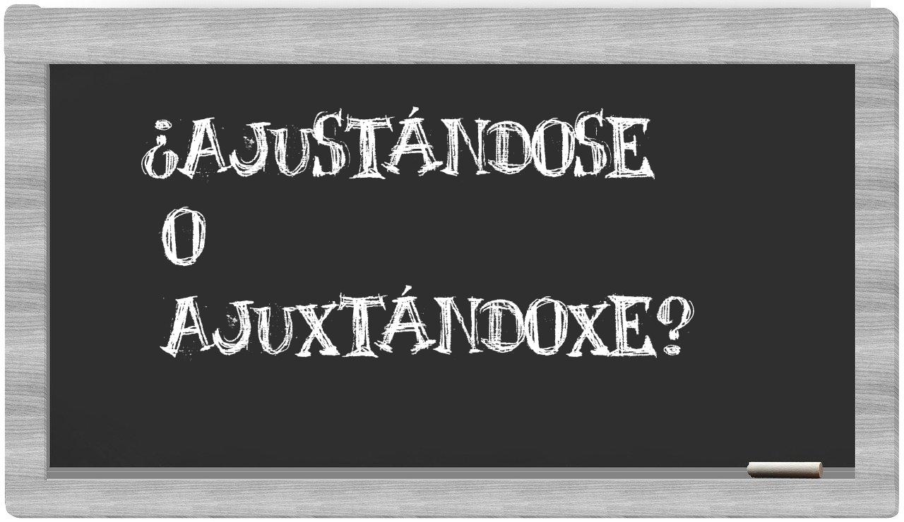 En lo que respecta a la comparación entre ajustándose y ajuxtándoxe, nunca deberías experimentar incertidumbre, porque únicamente ajustándose es la forma correcta de escribirlo. Por otra parte, ajuxtándoxe no tiene cabida en el Diccionario de la Real Academia Española.