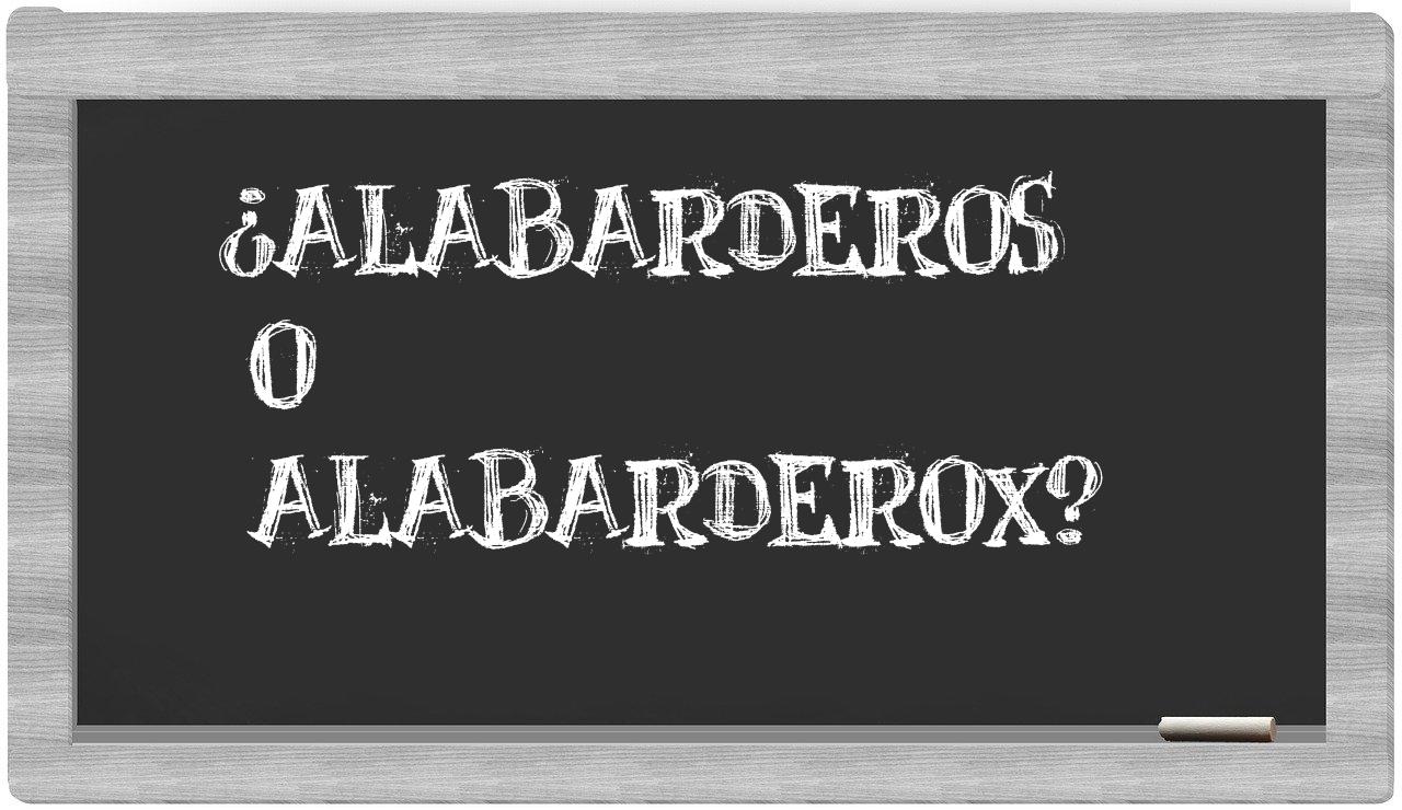 Cuando te sitúas ante la disyuntiva entre alabarderos y alabarderox, no existe motivo alguno para titubear, dado que únicamente alabarderos es la opción correctamente asentada en el idioma, mientras que alabarderox carece de reconocimiento en el Diccionario de la Real Academia Española.