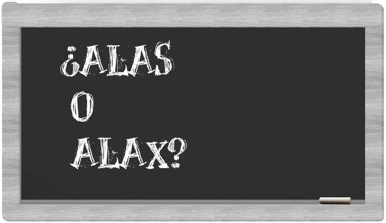 Cuando se presenta la disyuntiva entre alas y alax, no hay razón para titubear, puesto que solo alas cuenta con la aprobación del Diccionario de la Real Academia Española, mientras que alax no se encuentra registrado en sus páginas.