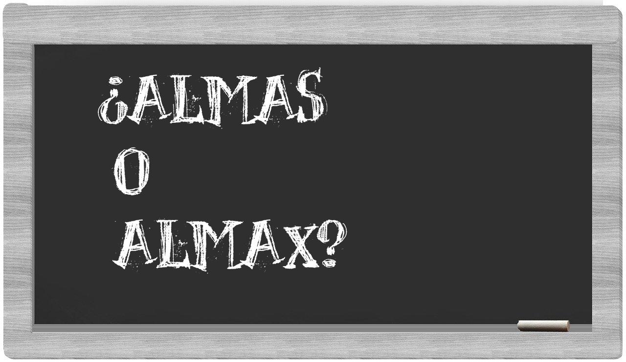 Cuando te encuentres en la encrucijada entre almas y almax, ten la certeza de que solo almas es la opción adecuada, puesto que almax carece de reconocimiento en el prestigioso Diccionario de la Real Academia de la Lengua.
