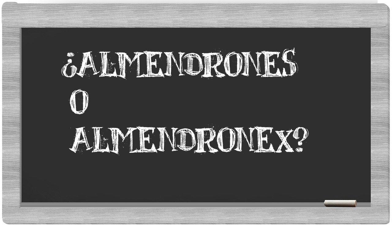 En la situación particular entre los términos almendrones y almendronex, nunca deberías tener incertidumbres, puesto que únicamente almendrones se encuentra registrado de manera adecuada. Por otro lado, almendronex no se halla en el compendio de la Real Academia de la Lengua.
