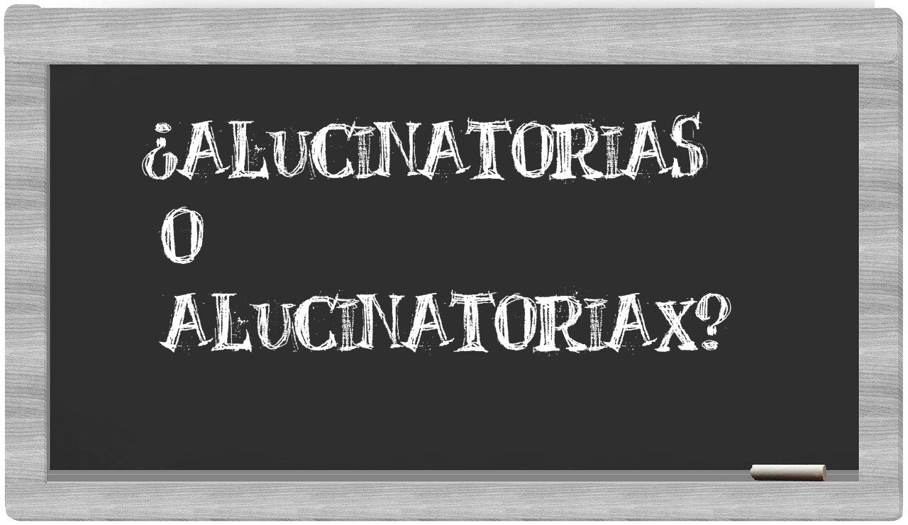 Cuando se trata de distinguir entre alucinatorias y alucinatoriax, no hay lugar para la incertidumbre, puesto que únicamente alucinatorias se encuentra correctamente redactada. Cabe señalar que alucinatoriax no figura en el léxico de la Real Academia Española.