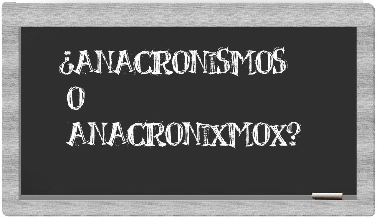 Cuando te encuentres ante las opciones de anacronismos y anacronixmox, no vaciles en tu elección, puesto que únicamente anacronismos es la que se encuentra debidamente aceptada, mientras que anacronixmox no figura en el Diccionario de la Real Academia Española.