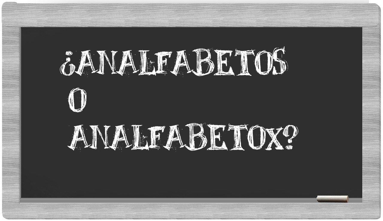 Cuando se trata de la comparación entre analfabetos y analfabetox, debes estar completamente seguro, puesto que únicamente analfabetos se encuentra adecuadamente expresada. Por otro lado, analfabetox no forma parte del léxico reconocido por la Real Academia Española.