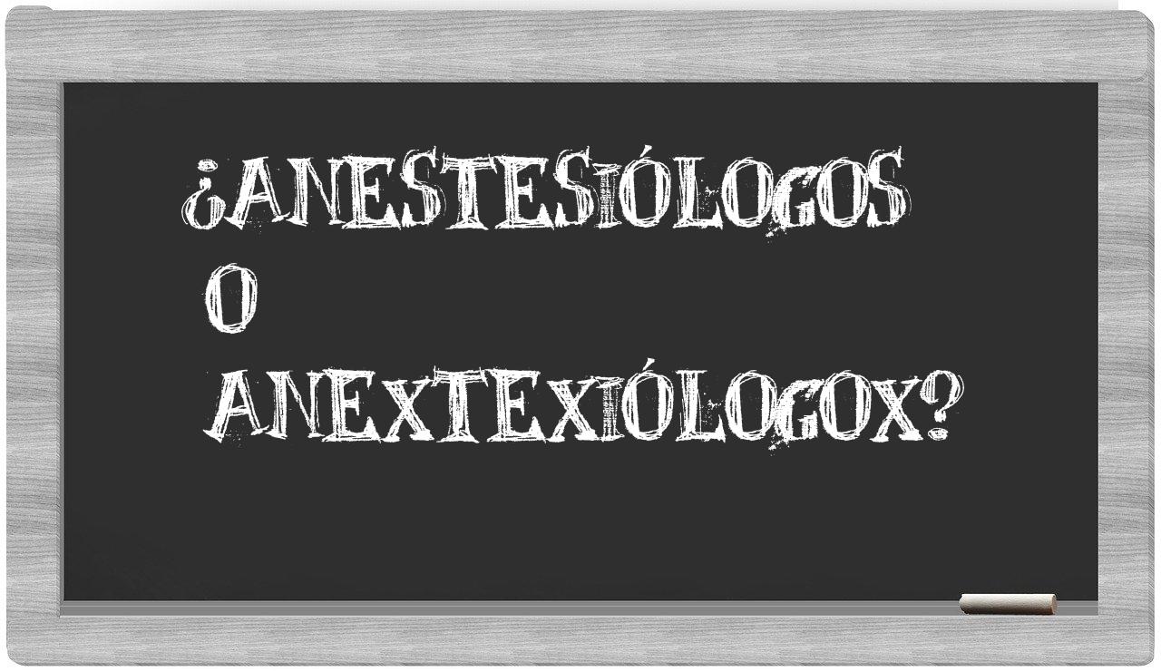 Cuando se trata de elegir entre anestesiólogos y anextexiólogox, no deberías titubear, ya que únicamente la forma anestesiólogos es la adecuada, mientras que anextexiólogox no figura en el prestigioso Diccionario de la Real Academia Española.