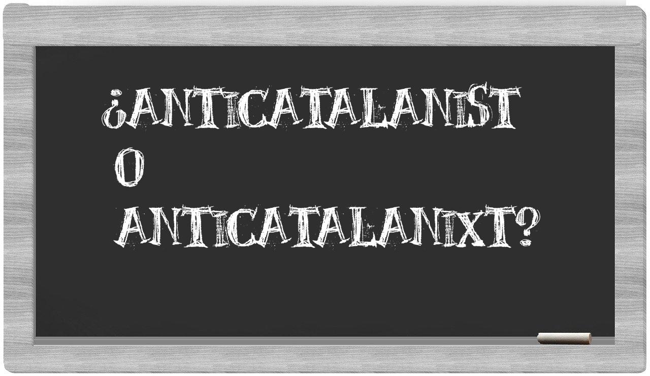 En la comparación entre los términos anticatalanist y anticatalanixt, no hay lugar para la indecisión, puesto que únicamente anticatalanist se encuentra correctamente formulada. Por otro lado, anticatalanixt no se halla en el Diccionario de la Real Academia Española.