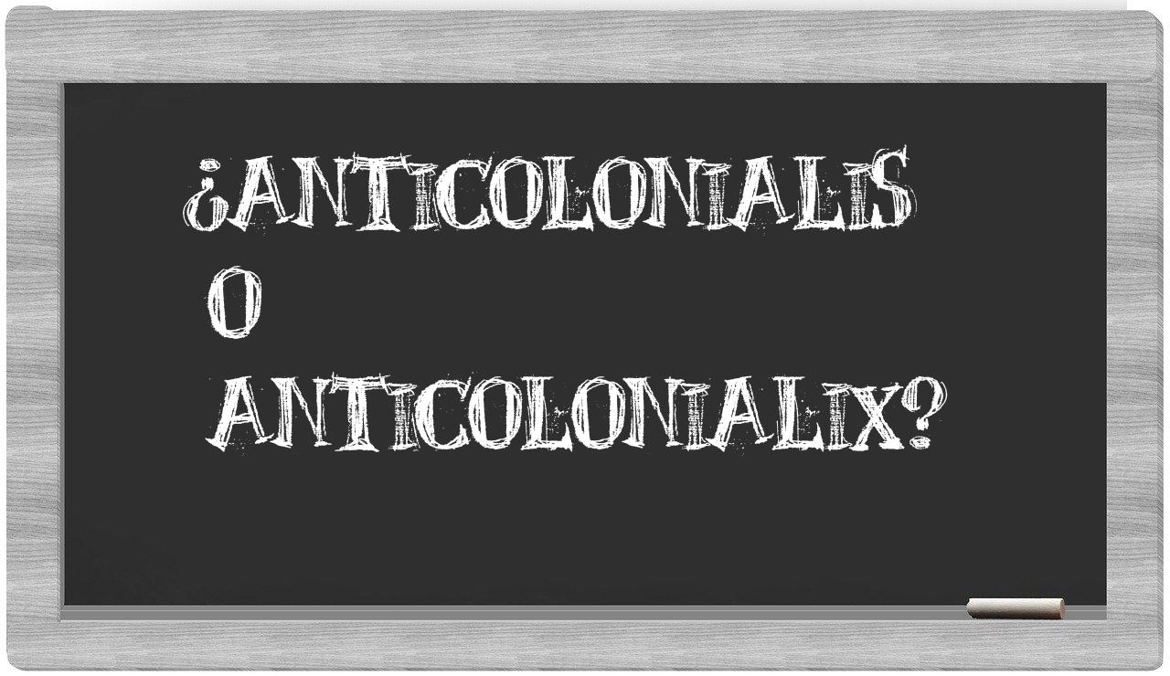 En lo que respecta a la distinción entre anticolonialis y anticolonialix, no debería haber lugar para la incertidumbre, puesto que únicamente anticolonialis se encuentra registrada adecuadamente. Por otro lado, anticolonialix no se halla en el compendio de la Real Academia Española.