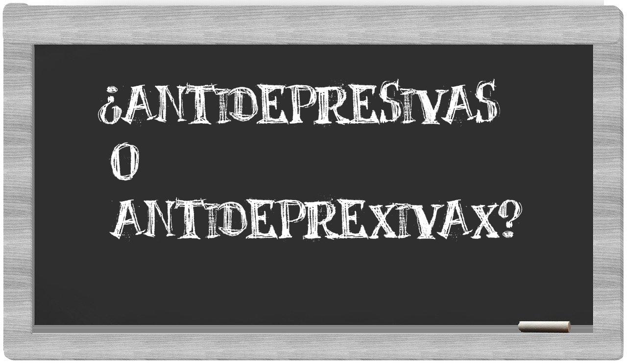 Cuando se presenta la comparación entre antidepresivas y antideprexivax, no hay lugar para la incertidumbre, pues únicamente antidepresivas se encuentra registrada de manera adecuada en el léxico oficial, mientras que antideprexivax no forma parte del repertorio de términos válidos según la Real Academia de la Lengua.
