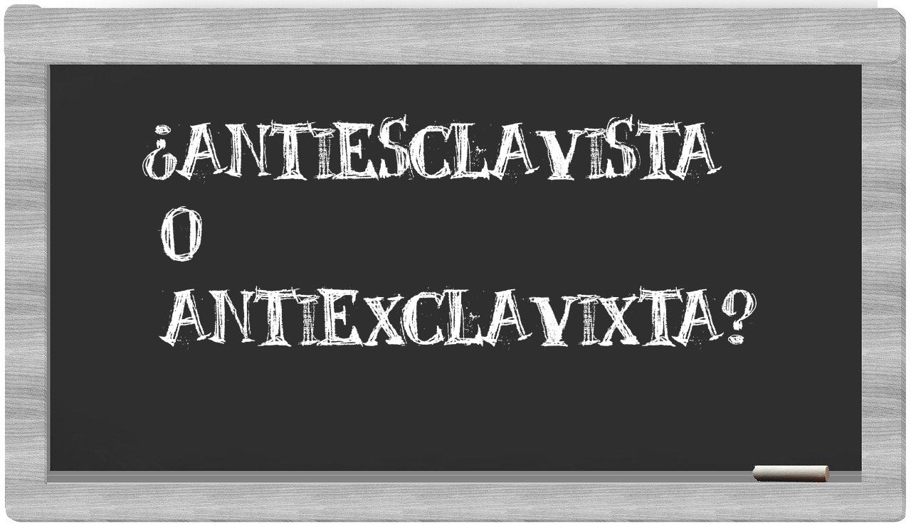 La mezcla entre antiesclavista y antiexclavixta se origina, en gran parte, debido a su semejanza en la pronunciación. En la mayor parte de los acentos del español, ambas palabras se articulan de manera muy parecida, lo que puede inducir a error al pensar que su escritura es idéntica. No obstante, la forma correcta de escribir cada término está determinada por su raíz etimológica y las normas particulares del idioma español que rigen su escritura.