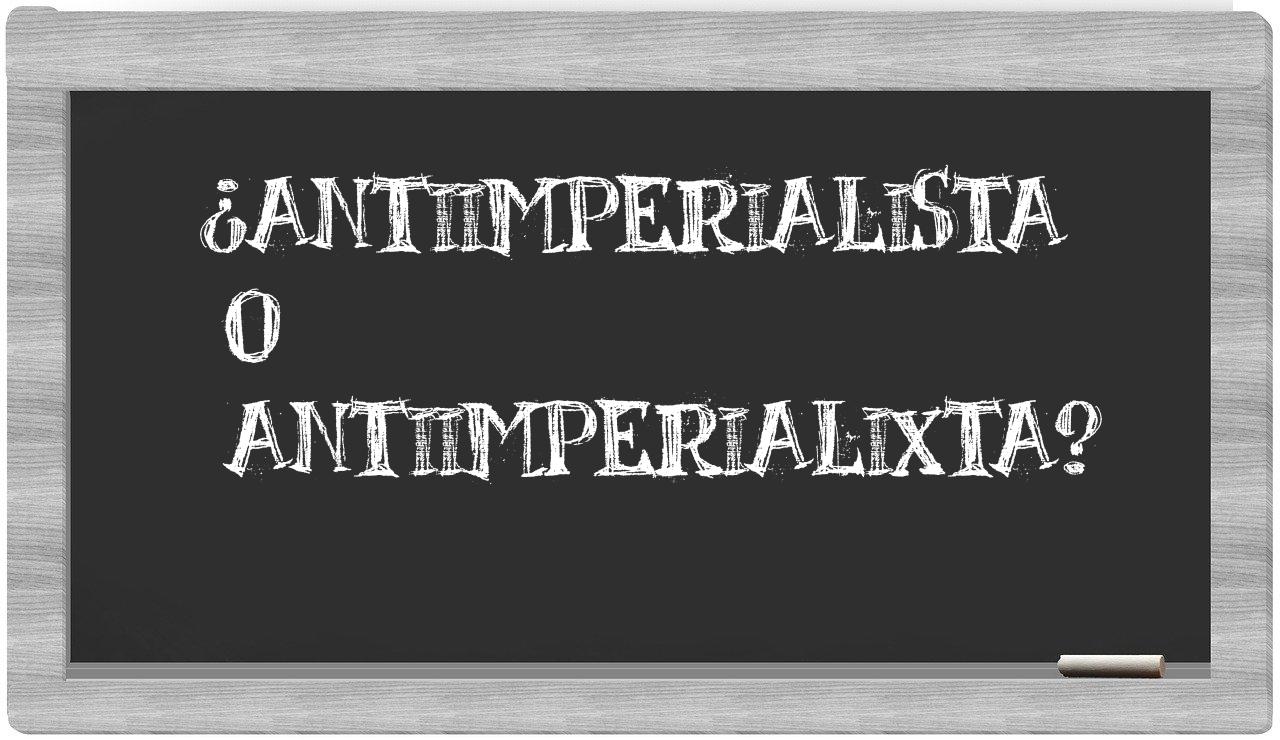 Cuando se trata de la distinción entre antiimperialista y antiimperialixta, no hay lugar para la incertidumbre, puesto que únicamente antiimperialista se encuentra correctamente redactada. Por otro lado, antiimperialixta no figura en el repertorio del Diccionario de la Real Academia Española.