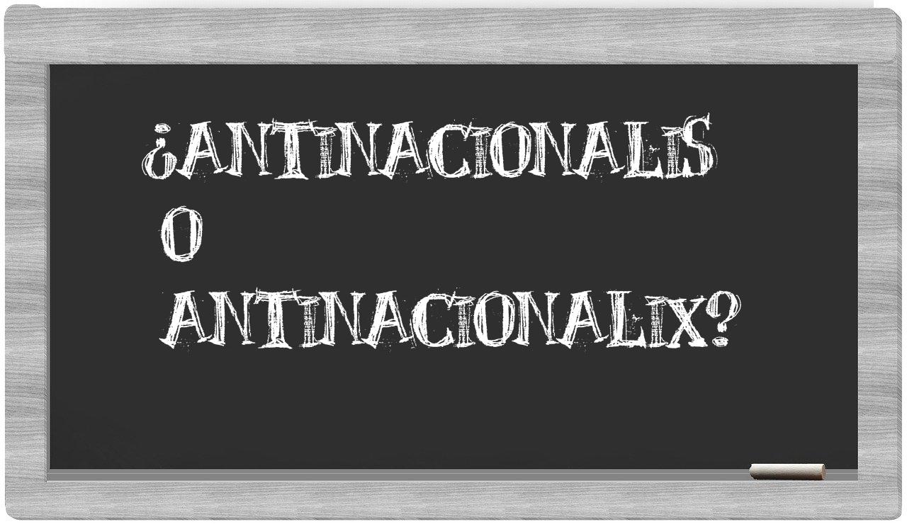 Cuando se trata de distinguir entre antinacionalis y antinacionalix, no hay lugar para la incertidumbre, puesto que únicamente antinacionalis se encuentra correctamente redactada. Cabe señalar que antinacionalix no figura en el léxico de la Real Academia Española.