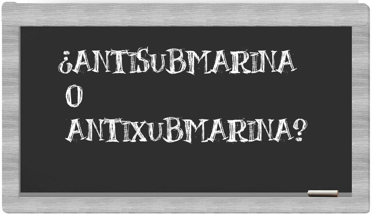 En la situación particular que involucra los términos antisubmarina y antixubmarina, nunca deberías tener incertidumbre, puesto que únicamente antisubmarina está correctamente redactada. Por otro lado, antixubmarina no se encuentra registrada en el Diccionario de la Real Academia Española.