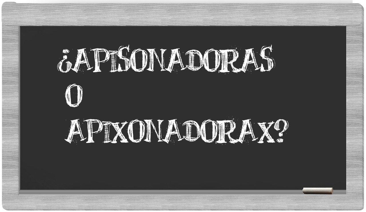 Cuando se trata de elegir entre apisonadoras y apixonadorax, no deberías vacilar en tu decisión, puesto que únicamente apisonadoras es la forma correcta de la palabra; por otro lado, apixonadorax no se encuentra registrada en el Diccionario de la Real Academia Española.