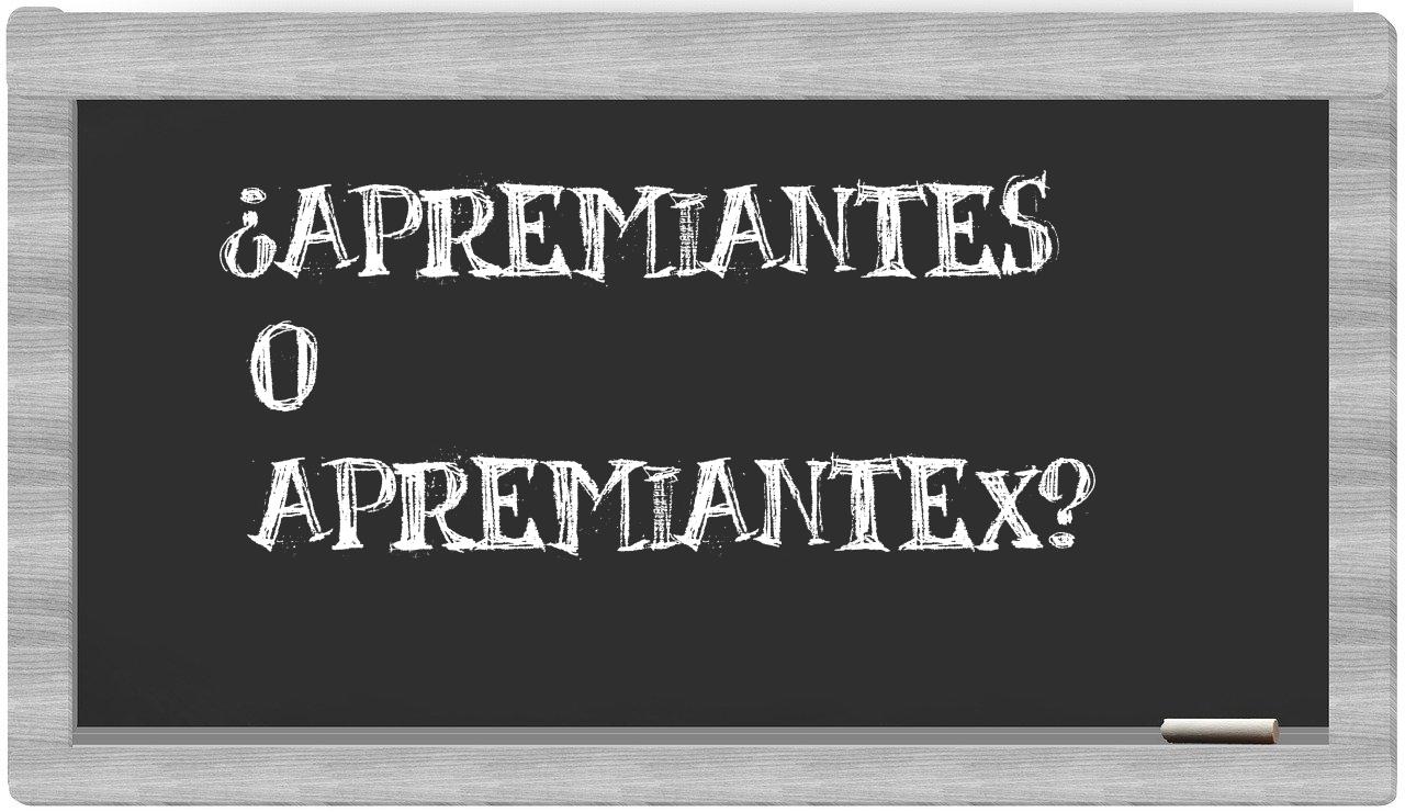 En la particularidad que involucra a apremiantes y apremiantex, nunca deberías tener titubeos, puesto que únicamente apremiantes se encuentra debidamente registrada en el léxico formal. Por otro lado, apremiantex no figura en el repertorio de la Real Academia Española.
