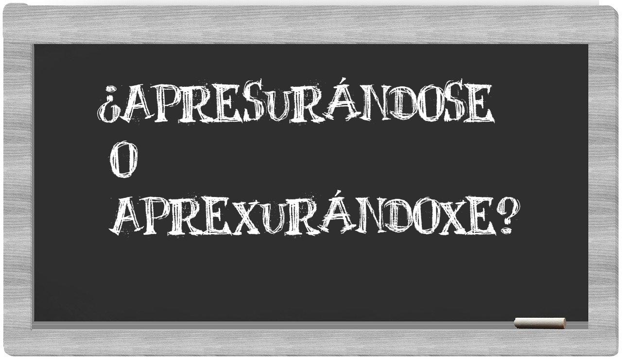 Cuando te enfrentas a las opciones apresurándose y aprexurándoxe, es crucial que no vaciles, pues solo apresurándose es la alternativa correctamente redactada; por otro lado, aprexurándoxe carece de reconocimiento en el Diccionario de la Real Academia Española.