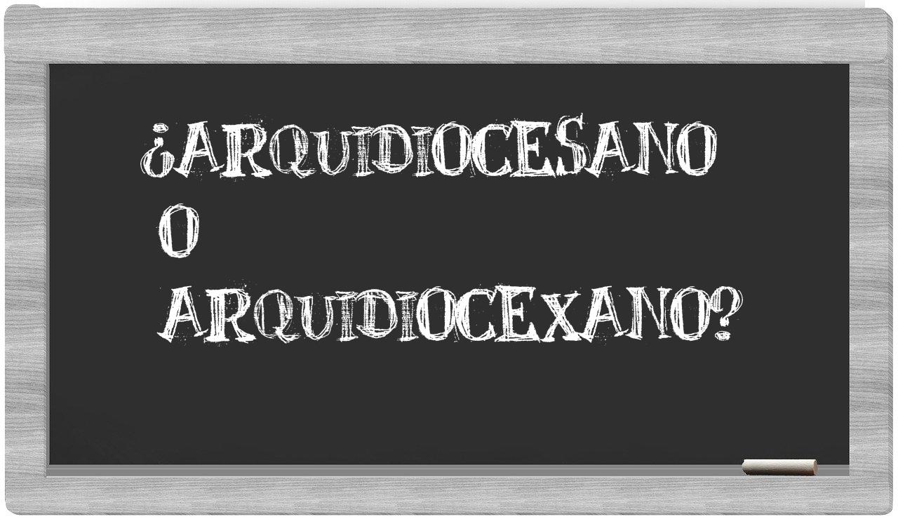 Cuando se presenta la disyuntiva entre arquidiocesano y arquidiocexano, es fundamental no vacilar, dado que únicamente arquidiocesano es la que se encuentra adecuadamente redactada. Por su parte, arquidiocexano no figura en el glosario de la Real Academia Española.