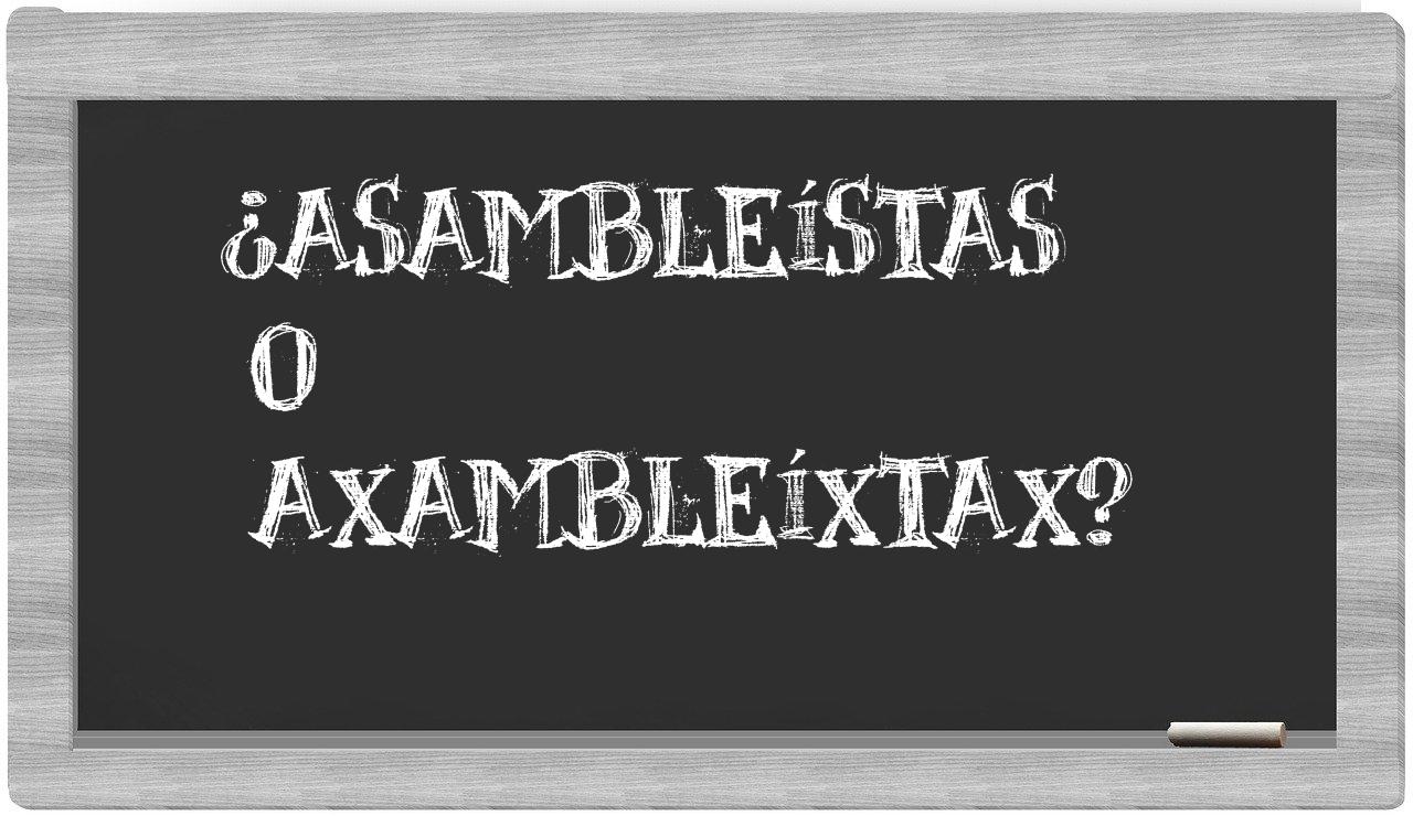 Cuando se presenta la disyuntiva entre asambleístas y axambleíxtax, es fundamental que no haya incertidumbre, puesto que únicamente asambleístas es la forma adecuada. Por otro lado, axambleíxtax no se encuentra registrada en el Diccionario de la Real Academia Española.