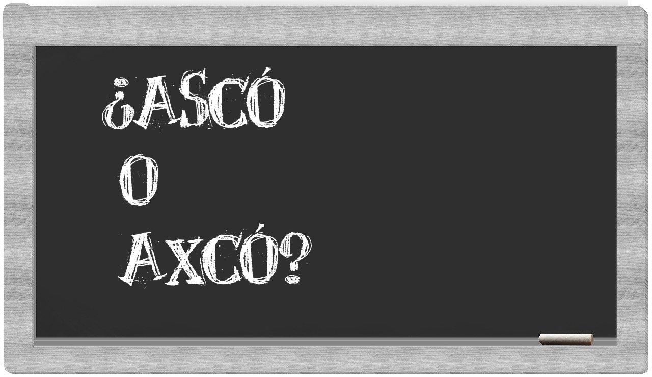 Cuando se trata del término entre ascó y axcó, es crucial que no te sientas indeciso, dado que únicamente ascó es la opción que se encuentra debidamente registrada. Por otro lado, axcó no forma parte del léxico aprobado por la Real Academia Española.