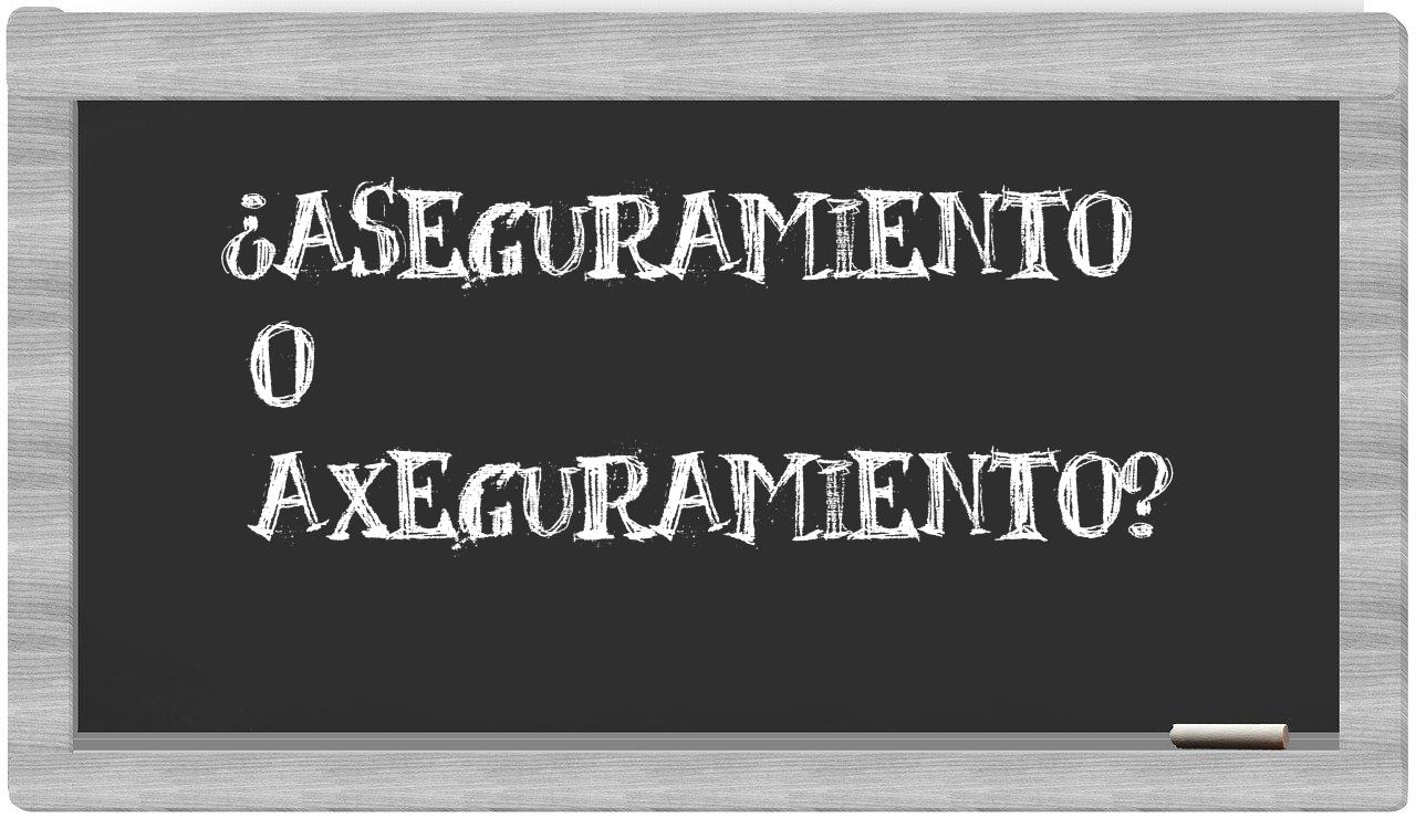 En la situación particular que involucra los términos aseguramiento y axeguramiento, no deberías titubear en ningún momento, puesto que únicamente aseguramiento es la forma correcta. La variante axeguramiento carece de reconocimiento en el Diccionario de la Real Academia Española.