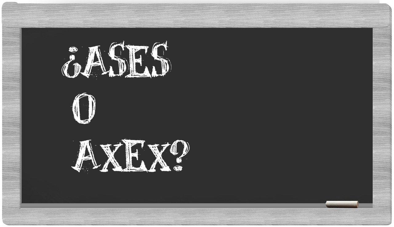 En lo que respecta a la distinción entre ases y axex, no deberías titubear, porque solo ases es la forma adecuada; axex, por otro lado, carece de reconocimiento en el Diccionario de la Real Academia Española.