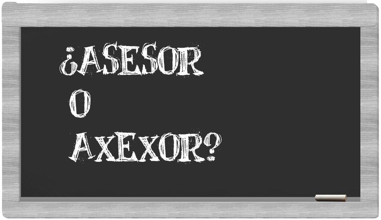 En la situación particular que involucra a los términos asesor y axexor, es crucial que no vaciles, puesto que únicamente asesor se encuentra correctamente redactado. La palabra axexor no figura en el Diccionario de la Real Academia Española.