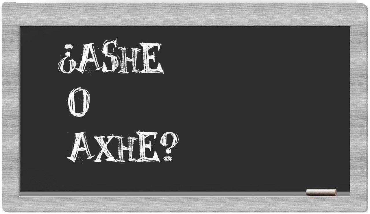 En la particular situación que involucra los términos ashe y axhe, no deberías titubear en ningún momento, dado que únicamente ashe se encuentra correctamente redactada. Por otro lado, axhe no se halla en el Diccionario de la Real Academia Española.