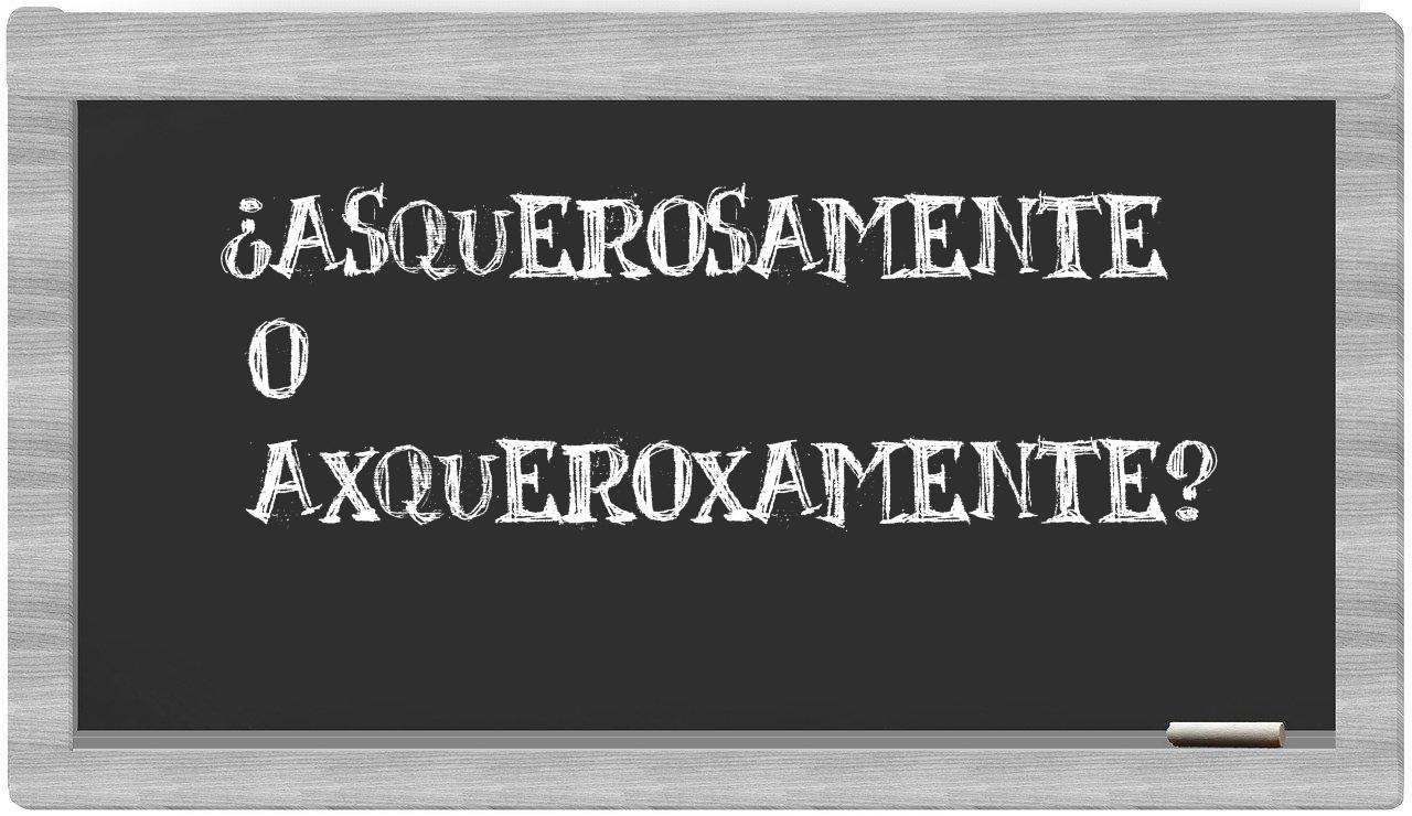 Cuando se trata de la elección entre asquerosamente y axqueroxamente, no hay lugar para la incertidumbre, puesto que únicamente asquerosamente se presenta como la forma adecuada; axqueroxamente ni siquiera figura en el diccionario de la Real Academia Española.