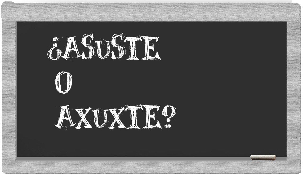 Respecto a la relación entre los términos asuste y axuxte, es fundamental que no vaciles, puesto que únicamente asuste es la forma correcta reconocida, mientras que axuxte carece de presencia en el Diccionario de la Real Academia Española.