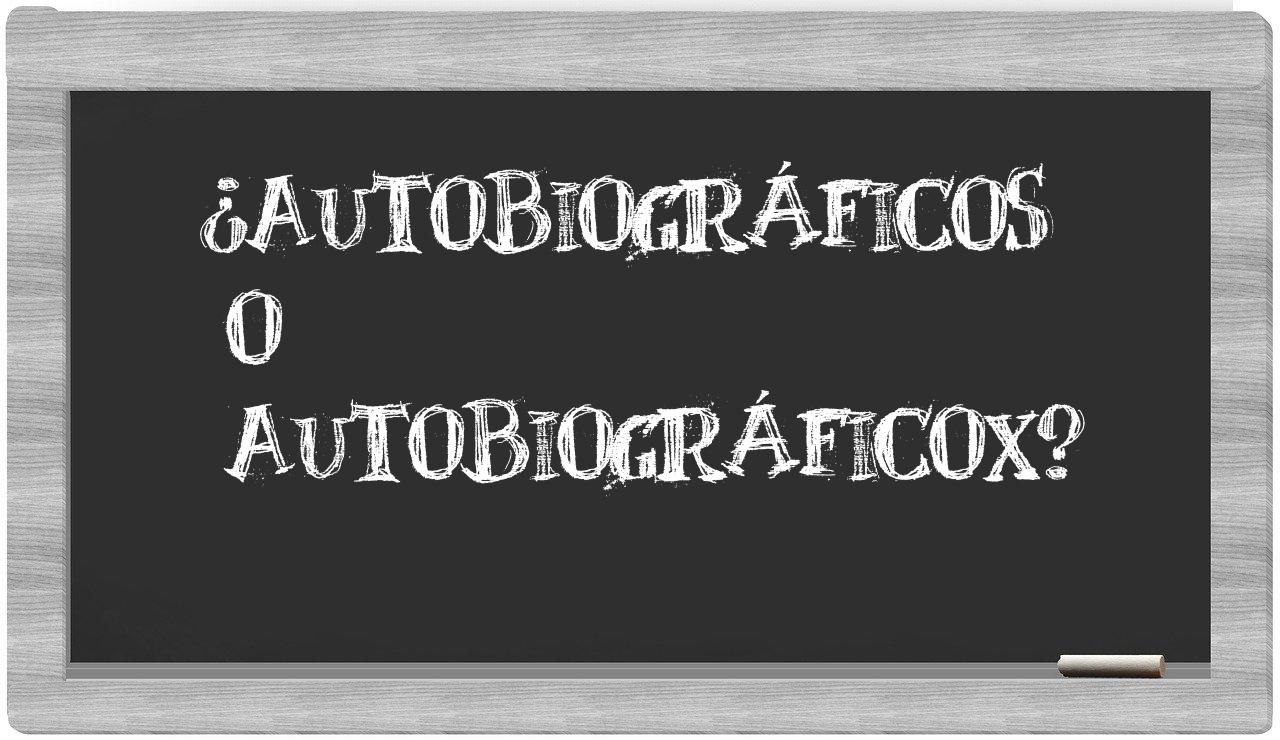 En la situación específica que involucra los términos autobiográficos y autobiográficox, no deberías titubear en absoluto, porque únicamente autobiográficos es la forma adecuada. Por otro lado, autobiográficox no se encuentra registrado en el Diccionario de la Real Academia Española.