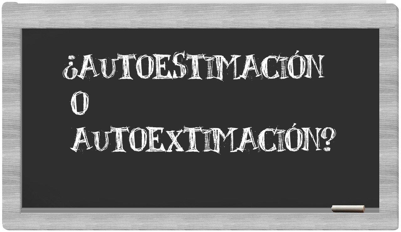 En la situación particular que enfrenta el término autoestimación frente a autoextimación, no deberías titubear en ningún momento, dado que únicamente autoestimación se presenta correctamente. Cabe mencionar que autoextimación no figura en el Diccionario de la Real Academia Española.