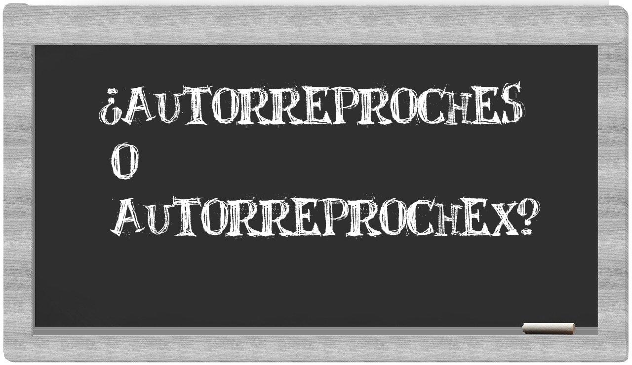 Cuando se trate de la elección entre autorreproches y autorreprochex, no deberías titubear, pues únicamente autorreproches se presenta con la ortografía adecuada. Por otro lado, autorreprochex no figura en el Diccionario de la Real Academia Española.