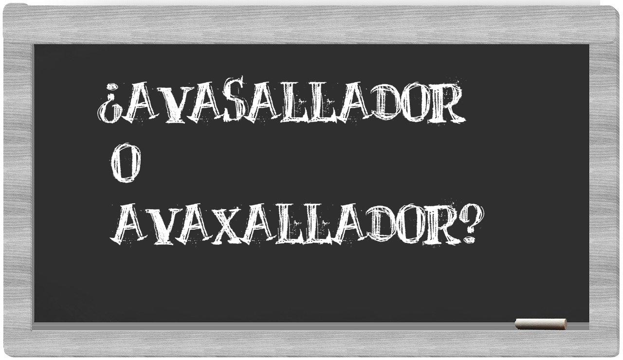 En la particular situación entre las expresiones avasallador y avaxallador, nunca debería existir incertidumbre, puesto que únicamente avasallador se encuentra registrada de manera adecuada. Por otro lado, avaxallador no figura en el Diccionario de la Real Academia Española.