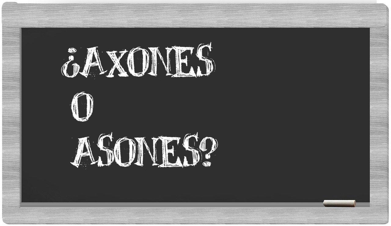 En la situación específica que involucra los términos axones y asones, no deberías titubear en ningún momento, puesto que únicamente axones se encuentra adecuadamente redactada. En cambio, asones carece de reconocimiento en el Diccionario de la Real Academia Española.