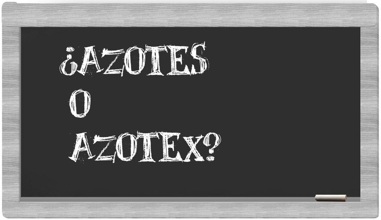 En la situación específica que involucra a azotes y azotex, no deberías titubear ni un instante, pues únicamente azotes se encuentra correctamente redactada. Por otro lado, azotex no figura en el Diccionario de la Real Academia Española.