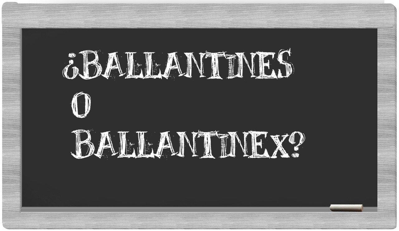 Cuando se trata de discernir entre ballantines y ballantinex, es fundamental no titubear, puesto que únicamente ballantines se presenta con la ortografía adecuada; por otro lado, ballantinex se encuentra ausente en el Diccionario de la Real Academia Española.