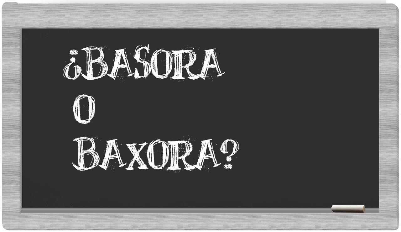 En la situación específica que involucra los términos basora y baxora, no debes titubear en tu elección, puesto que únicamente basora se encuentra correctamente redactada. Por otro lado, baxora no se encuentra registrada en el Diccionario de la Real Academia Española.